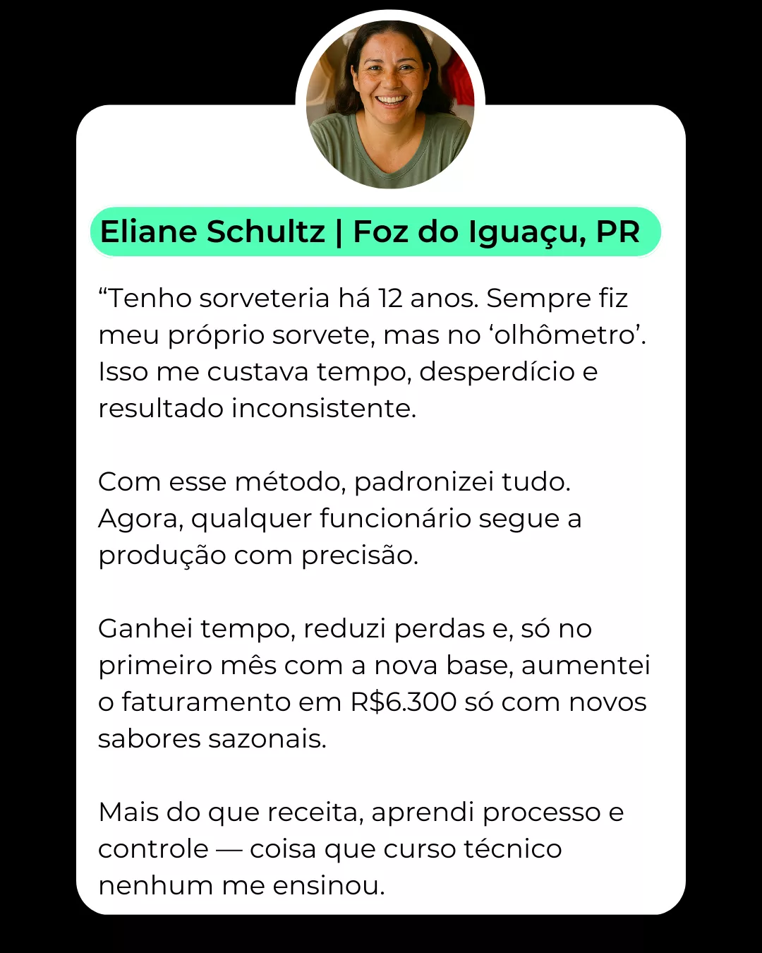 Fundadora da @sorveteriadesucesso, mentora de empresários do setor. Especialista em criação de sabores, combinações de ingredientes e produção de sorvete institucional, premium e gelato.